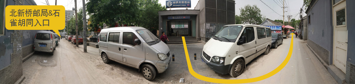 您下车地点的大概样子如下图所示。走进石雀胡同后,请参照下方‘步行’的指示继续向前。