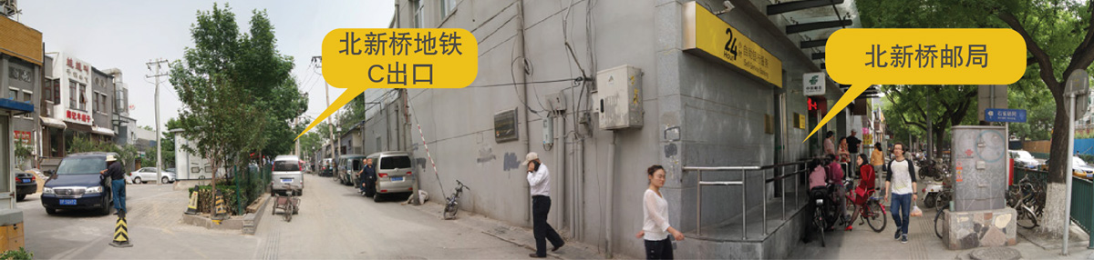 让出租车师傅把您放到北新桥东南角旁边的邮局,也就是地铁五号线北新桥站C口。